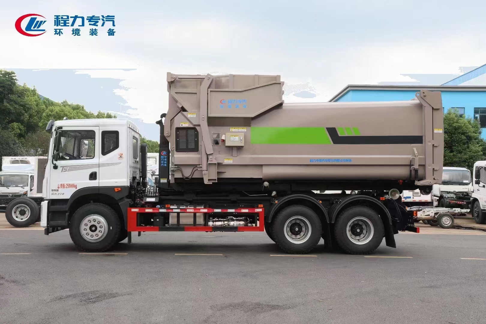 ??????湖北程力汽車:程力專汽東風(fēng)華神后雙橋勾臂垃圾車+移動(dòng)壓縮箱產(chǎn)品型號(hào)及參數(shù)配置,程力專汽東風(fēng)華神后雙橋勾臂垃圾車+移動(dòng)壓縮箱高清圖片,程力汽車系列程力專汽東風(fēng)華神后雙橋勾臂垃圾車+移動(dòng)壓縮箱最新報(bào)價(jià)請(qǐng)撥打客服熱線。車輛主要配置 產(chǎn)品名稱: 程力威牌CLW5253ZXXBHJ車廂可卸式垃圾車 外形尺寸: 828025503170(mm) 排放水平: 國六 貨箱尺寸: (mm) 總質(zhì)量: 25000(Kg) 接近/離去角: 15/19,15/20,15/21() 額定質(zhì)量: 14250,14185(Kg) 前懸后...