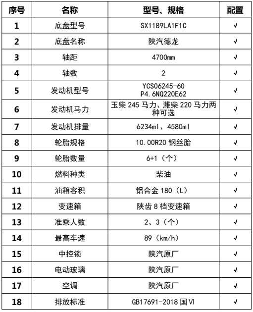 1,僅采用軸距4700mm; 2、該車廣泛應(yīng)用于修筑高等級公路瀝青路面灑布作業(yè),主要專用裝置瀝青罐體,瀝青噴灑系統(tǒng),罐體總?cè)萘?9.5立方米, 有效容積:9.06立方米,罐體外形尺寸(長×長軸×短軸)(mm):4150×2450×1700,介質(zhì):液態(tài)瀝青,密度:900千克/立方米;罐體保溫層厚度為80mm;3、側(cè)防護(hù)材料采用Q235,焊接連接;后防護(hù)由專用裝置代替,下邊緣離地高480mm;4、ABS系統(tǒng)生產(chǎn)廠家:西安正昌電子股份有限公司,型號(hào):ZQFB-V. 后部照明燈僅在駐車狀態(tài)下使用,起夜間照明作用,行駛過程中不可點(diǎn)亮。隨底盤選裝駕駛室。選裝排氣管樣式。