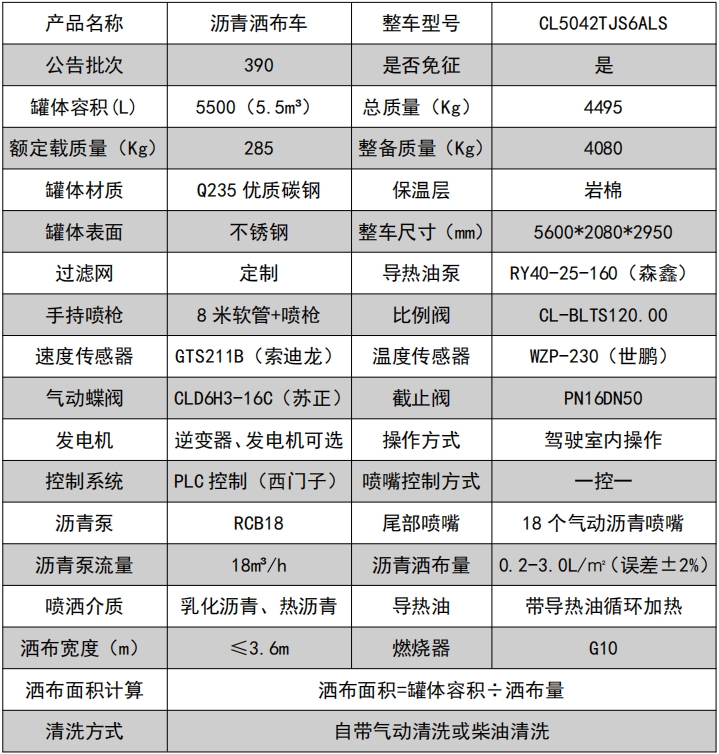 ??????湖北程力汽車:程力CL5042TJS6ALS福田領(lǐng)航 5.5 方藍牌智能瀝青灑布車產(chǎn)品型號及參數(shù)配置,程力CL5042TJS6ALS福田領(lǐng)航 5.5 方藍牌智能瀝青灑布車高清圖片,程力汽車系列程力CL5042TJS6ALS福田領(lǐng)航 5.5 方藍牌智能瀝青灑布車最新報價請撥打客服熱線。整車技術(shù)參數(shù) 產(chǎn)品商標(biāo) 程力牌 公告批次 390 產(chǎn)品名稱 水泥凈漿灑布車 產(chǎn)品型號 CL5042TJS6ALS 總質(zhì)量(Kg) 4495 罐體容積(m3) 額定載質(zhì)量(Kg) 285,220 外形尺寸(mm) 5600 × 2080 × 2950 整備質(zhì)量(Kg) 4080 貨廂...