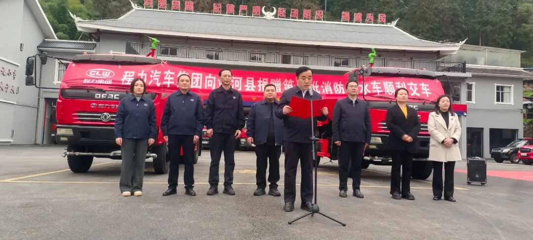 上圖:程力汽車集團承接的全國工商聯(lián)“萬企興萬村”共建鄉(xiāng)村振興對口幫扶縣----貴州省劍河縣,程力第二批捐贈消防灑水車現(xiàn)場,該縣縣委書記楊勝朝致答謝詞。