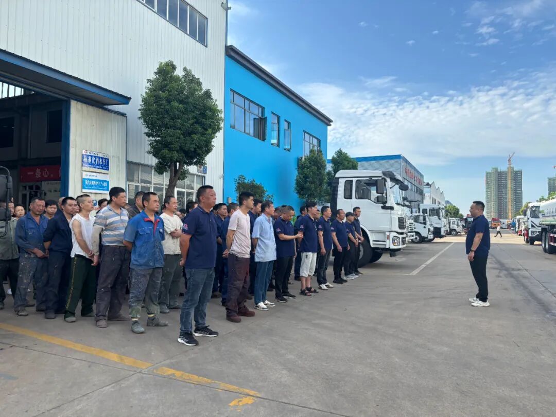 圖一(上):七月初以來,程力專用汽車股份有限公司總經(jīng)理成向陽帶領(lǐng)黨員模范先鋒班組,每天清晨6:00點鐘,準時開早會宣誓鼓舞干勁。