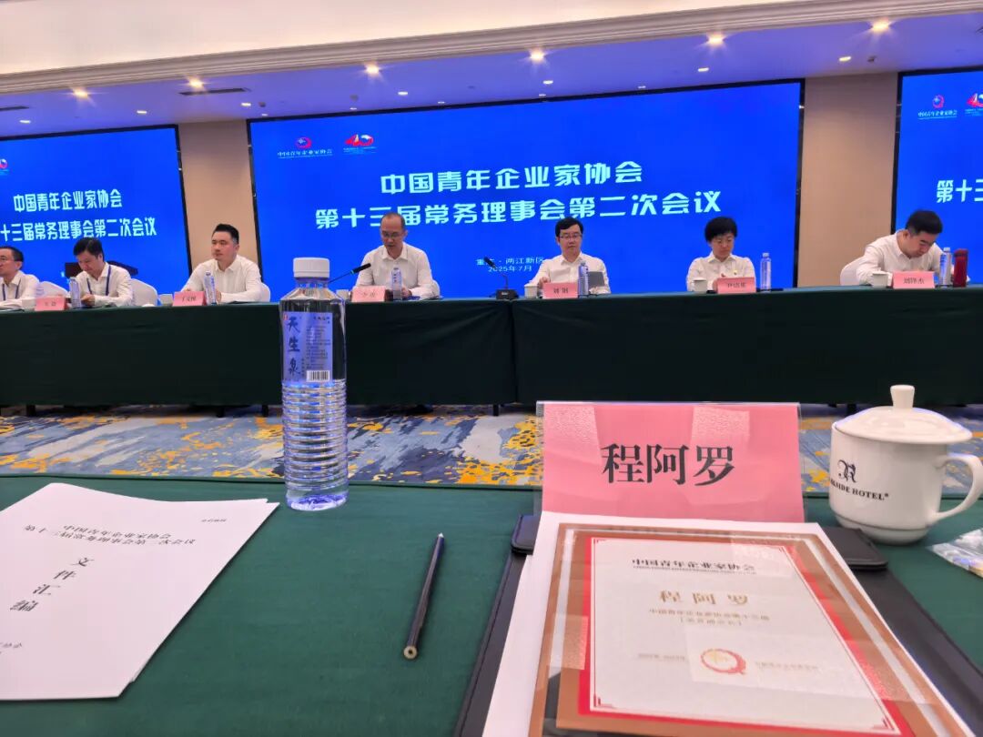 在中國(guó)青年企業(yè)家協(xié)會(huì)助力西部新通道活動(dòng)暨十三屆常務(wù)理事會(huì)第二次會(huì)議上,程力汽車集團(tuán)股份有限公司董事長(zhǎng)、湖北省工商聯(lián)副主席、全國(guó)工商聯(lián)青委會(huì)輪值主席、全球楚商青委會(huì)會(huì)長(zhǎng)程阿羅,很榮幸地被授予“中國(guó)青年企業(yè)家協(xié)會(huì)”榮譽(yù)副會(huì)長(zhǎng)。