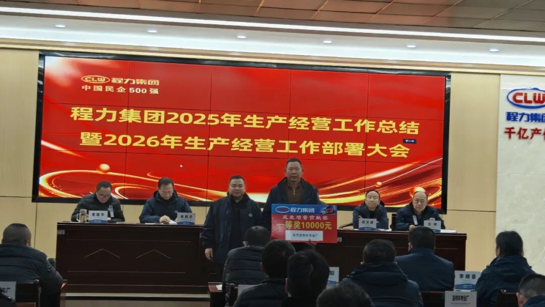 近日,程力集團(tuán)2025年生產(chǎn)經(jīng)營工作總結(jié)暨2026年生產(chǎn)經(jīng)營工作部署大會(huì),在程力集團(tuán)老廠六號(hào)樓會(huì)議室隆重舉行。集團(tuán)高層高管、各子公司班子、生產(chǎn)經(jīng)營單位及職能部門負(fù)責(zé)人齊聚一堂,由姜建平主持會(huì)議,集團(tuán)董事長程阿羅、集團(tuán)黨委書記袁昌才、總經(jīng)理朱武、副總經(jīng)理劉峰、倪文進(jìn),高管姜建平在主席臺(tái)就座,共憶耕耘碩果,共繪發(fā)展藍(lán)圖。